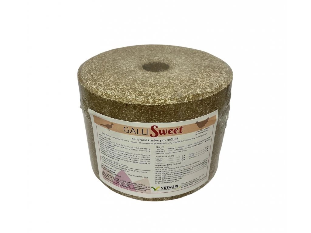 Minerální blok GALLISweet podporuje přirozené chování drůbeže a zároveň doplňuje nezbytné nutriční látky. Je účinnou prevencí kanibalismu, snižuje stres v chovech drůbeže.